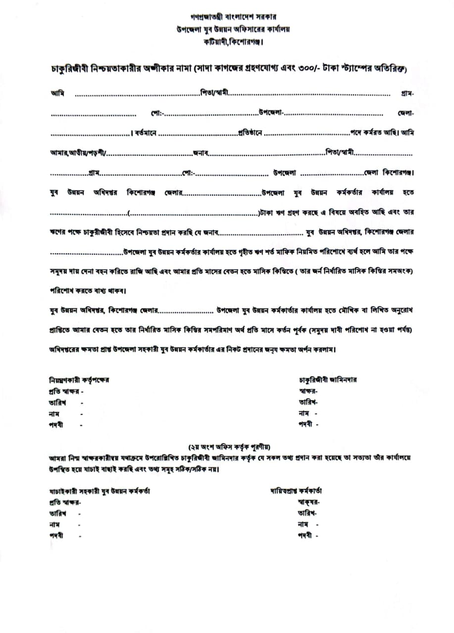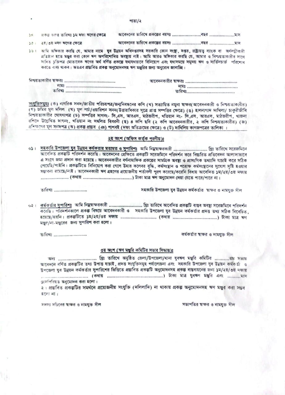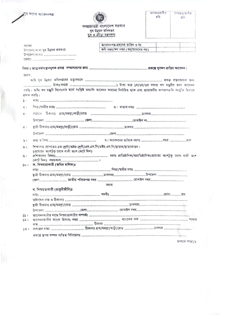 আত্মকর্মসংস্থানমূলক প্রকল্প সম্প্রসারণের জন্য প্রকল্পে যুব ঋণ প্রাপ্তির আবেদন